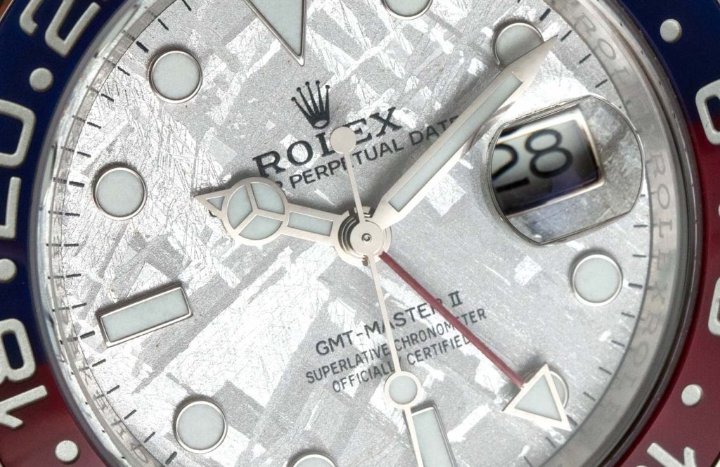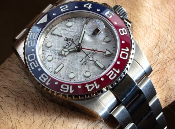 Rolex works in mysterious ways. Some will find this modus operandi annoying and dissociating, and others will experience it as tirelessly fascinating. I myself have slowly converted from the former to the latter group. All this is to say that, when there is something — anything — new from perfect replica Rolex watches, I ask myself: “Why has Rolex done this?” When it comes to this article’s subject, the Rolex GMT-Master II 126719BLRO Pepsi with meteorite dial, I think I’ve got it figured out on first sight.